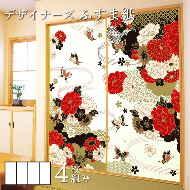 襖紙住宅設備襖壁紙ふすま紙和モダンサイズ牡丹に舞うデザイン4枚組白白st 142 F4 1700 牡丹に舞うゆめあり縦170cm ブティック東京